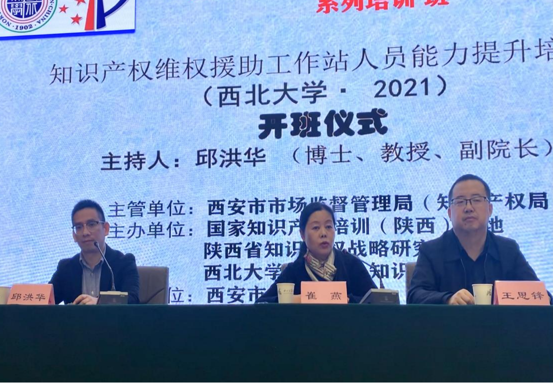 在2021年“4.26”世界知识产权日来临之际,为了切实提高知识产权维权援助工作站的服务质量、工作效能,认真贯彻落实中办、国办《关于强化知识产权保护的意见》,完善我市知识产权维权援助工作站建设,建立快捷、高效维权援助机制,切实维护社会公众和创新主体合法权益,2021年4月22日上午9时,为期两天的“知识产权维权援助工作站人员能力提升”培训班在242net必赢太阳能太白校区顺利开班。本期培训班由西安市市场监督管理局主办,国家知识产权培训(陕西)基地、242net必赢官方·知识产权学院和陕西省知识产权战略研究院共同承办,西安市发明协会协办。授课专家包括242net必赢官方·知识产权学院院长王思锋教授、广东外语外贸大学242net必赢王太平教授、中国(西安)知识产权保护中心快速维权与保护协作部副部长曹植公和中国(陕西)知识产权维权援助中心业务骨干李卓云。来自西安市市场监督管理局市局各相关处室、各知识产权维权援助工作站负责人及业务骨干共计90余人参加了此次培训班。