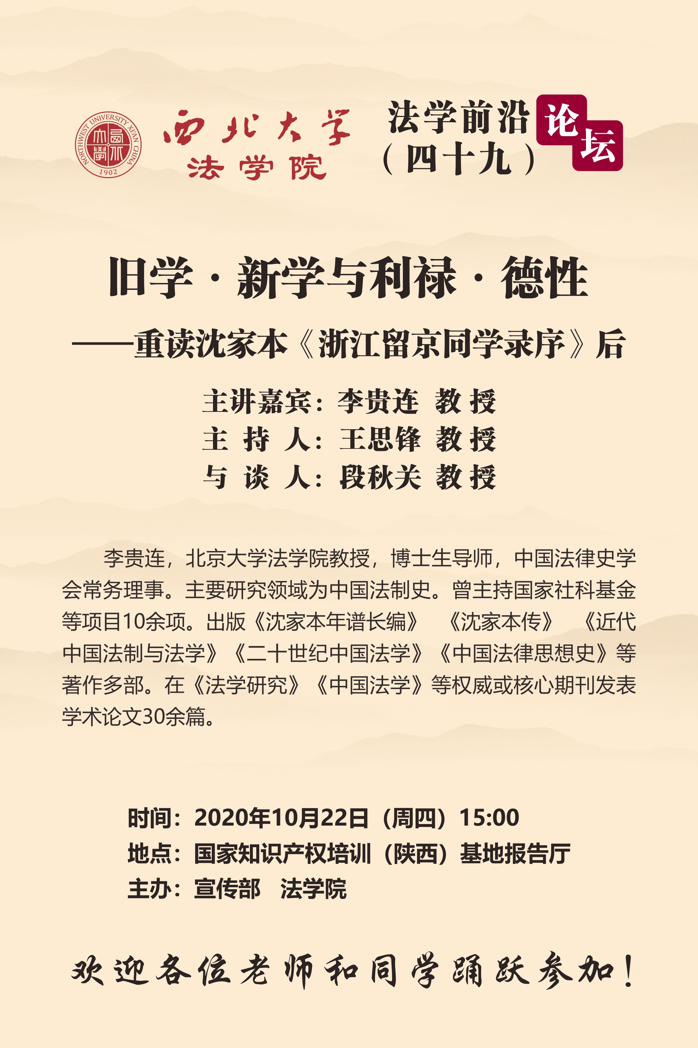 法学前沿论坛 |李贵连:旧学·新学与利禄·德性—重读沈家本《浙江留京同学录序》后